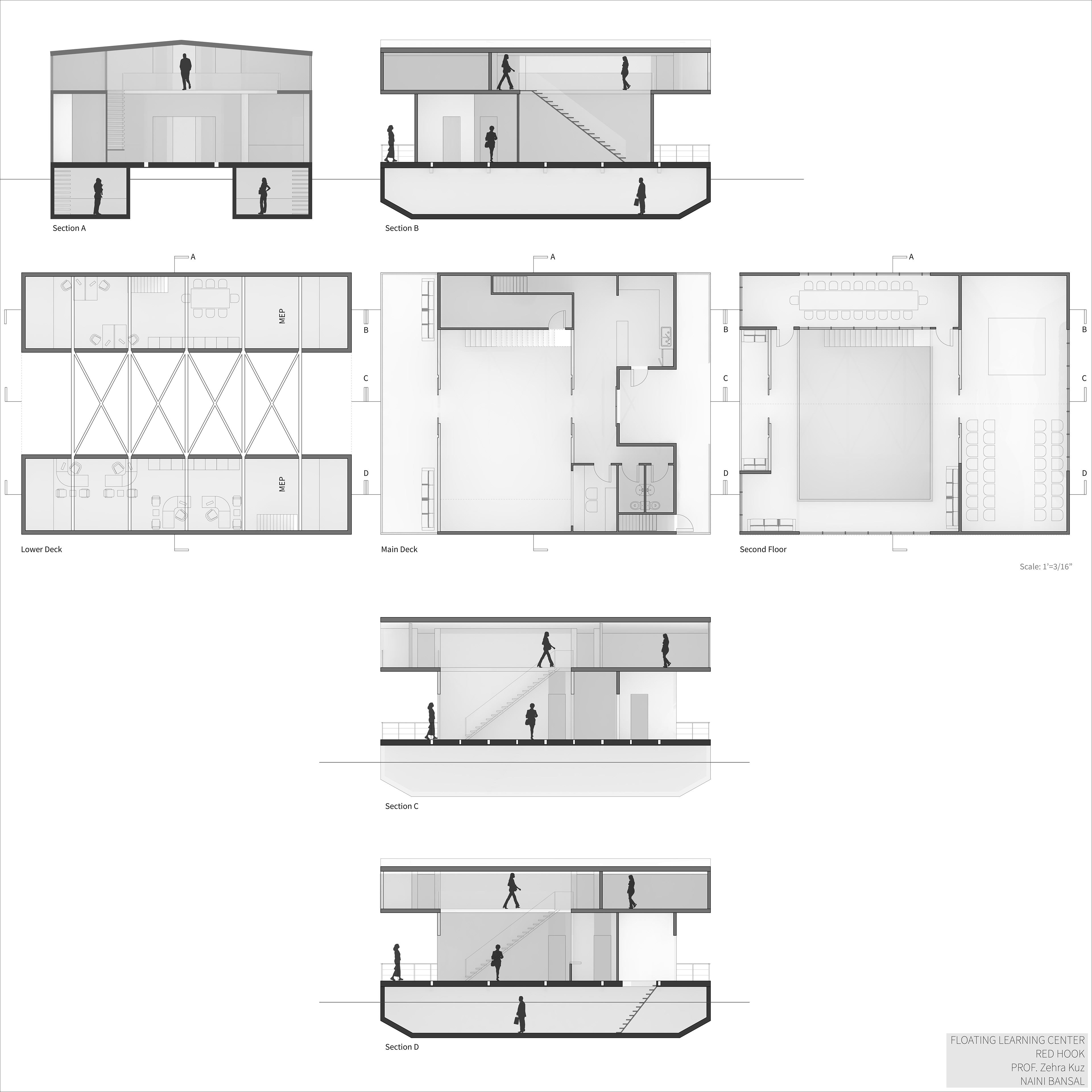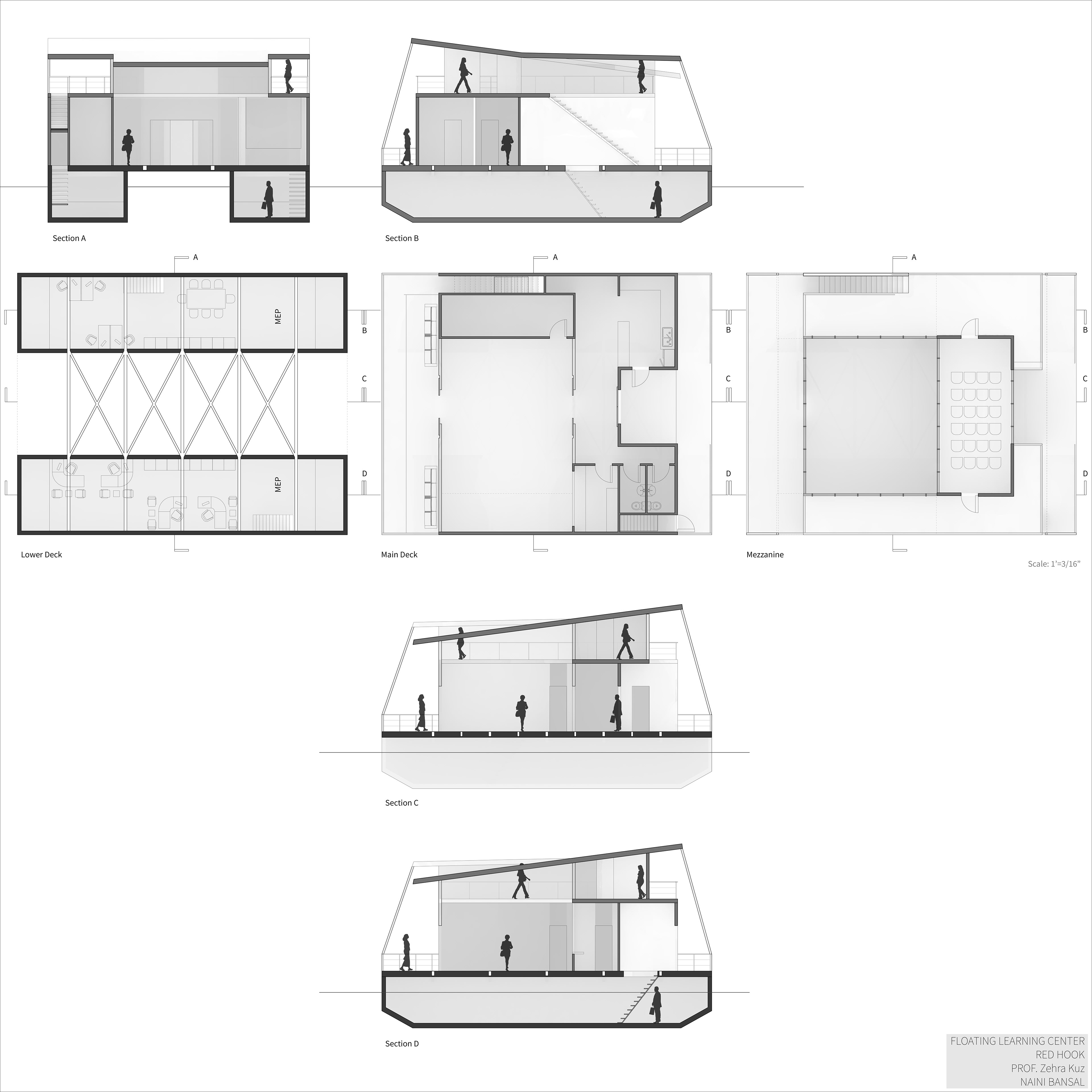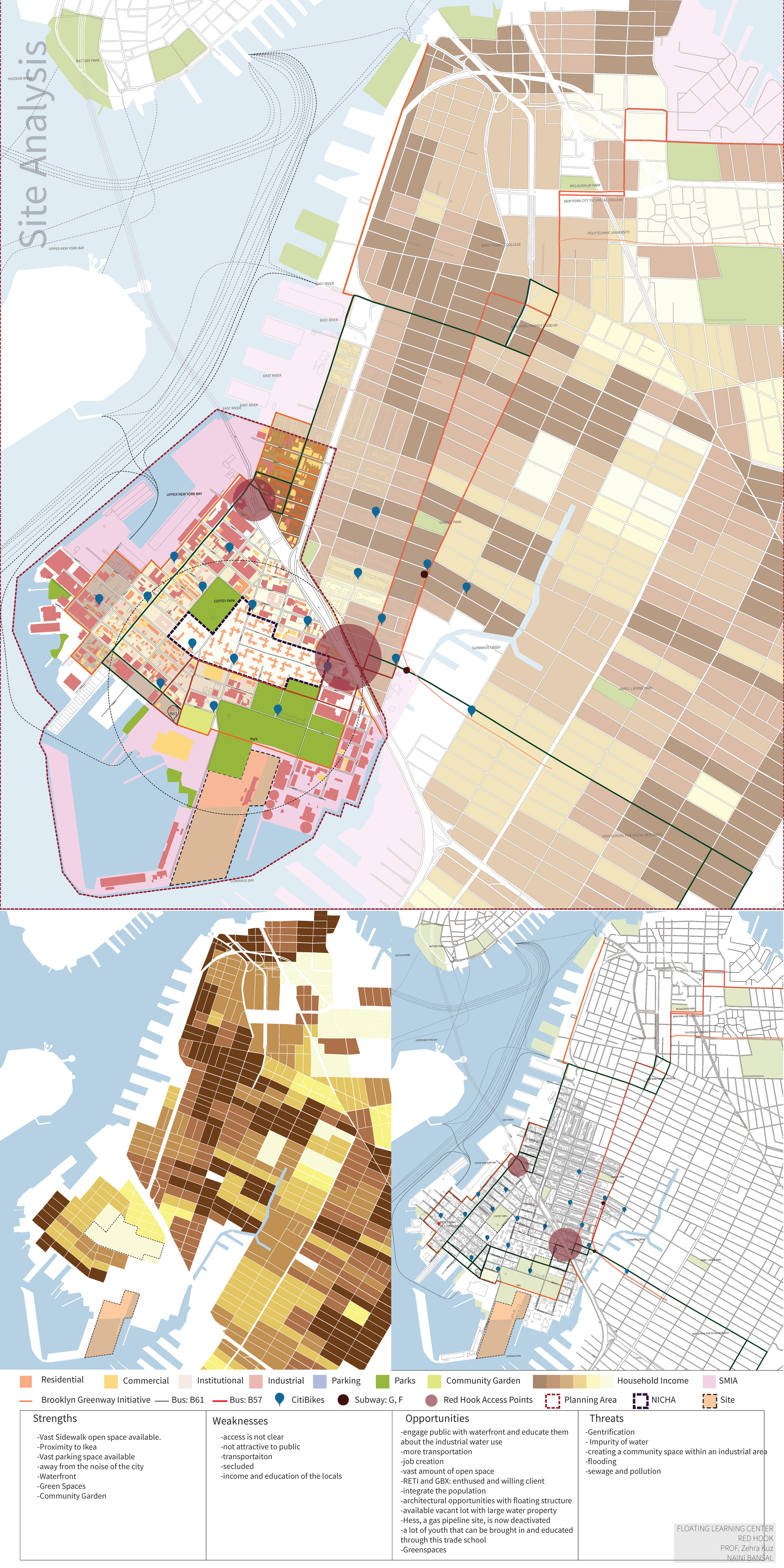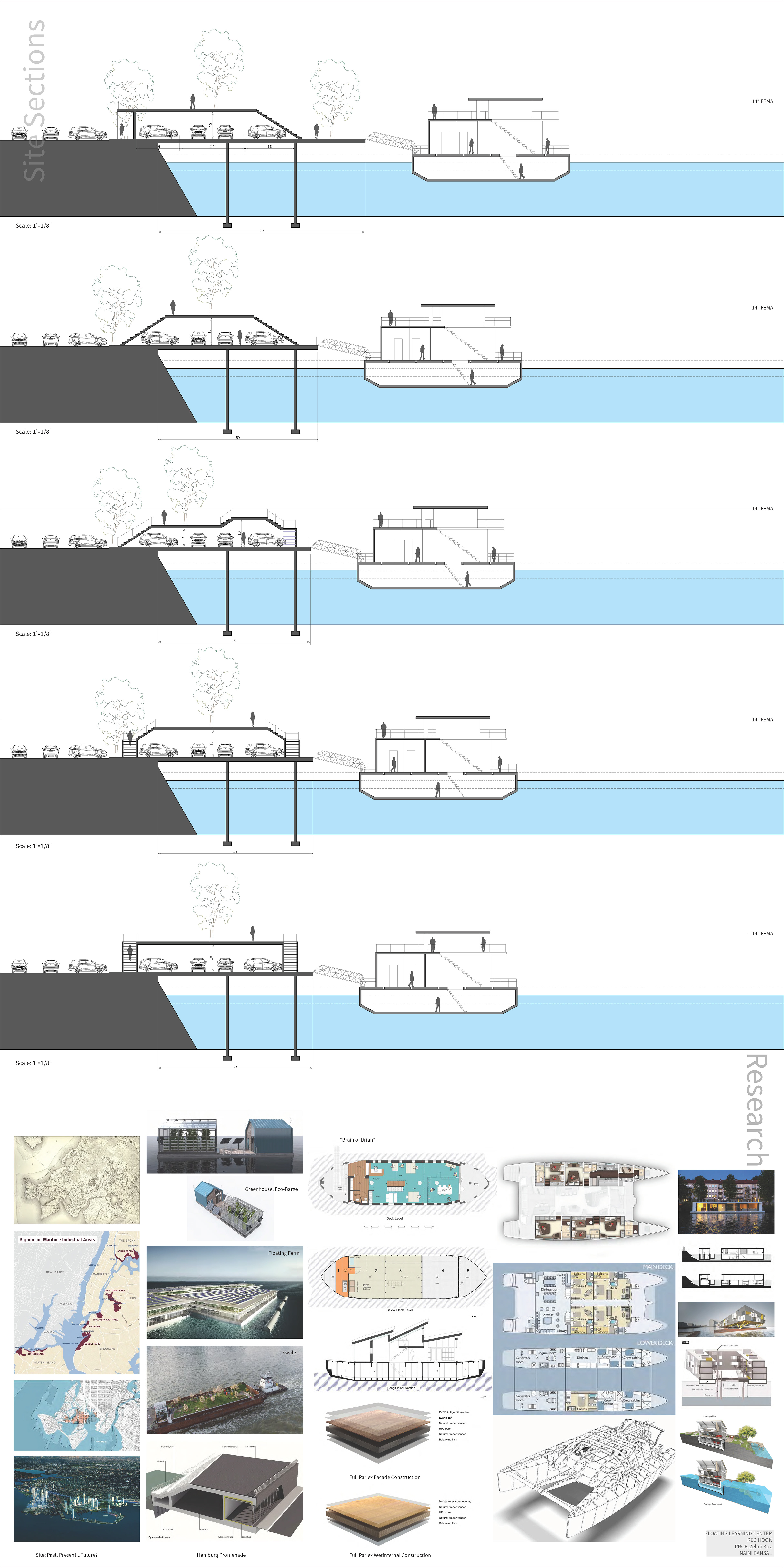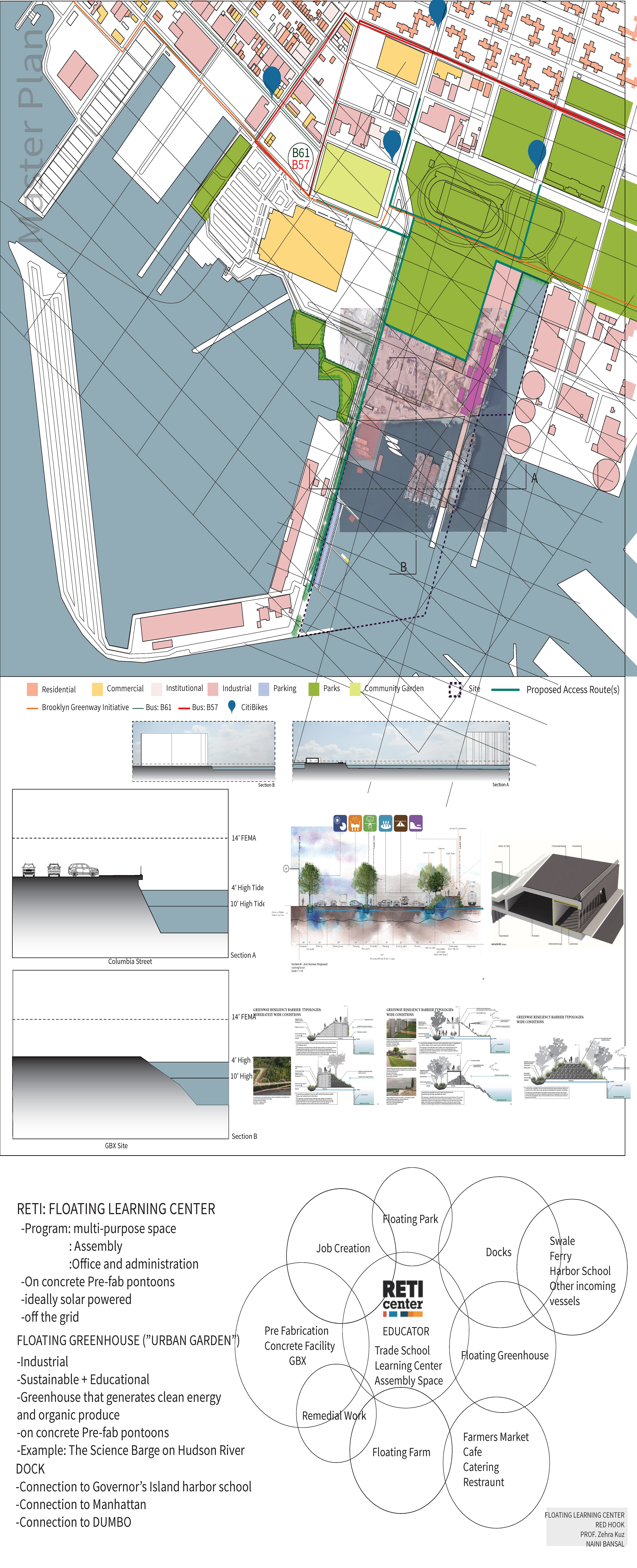 An urban scale project that was heavily based on research about the site, the rising water level climate crisis, and how architecture is responding to that crisis. The studio worked with RETI center, which stands for Resilience, Education, Training, and Innovation. We conducted our own researches and developed individual responses for the client. RETI wanted a floating continued education center in New York City’s Red Hook and Sunset Park SMIA. To best serve their need, I conducted a thorough site analysis of Red Hook including income, land use, transportation, use of waterfront, ease of access, and a SWOT analysis. Based on these analyses a master plan for the area and a catalog of amphibious structures was proposed. The floating facility was to be used as a trade school on GBX industrial site creating a relationship between the RETI Center (community educator) and GBX (industrial job provider).