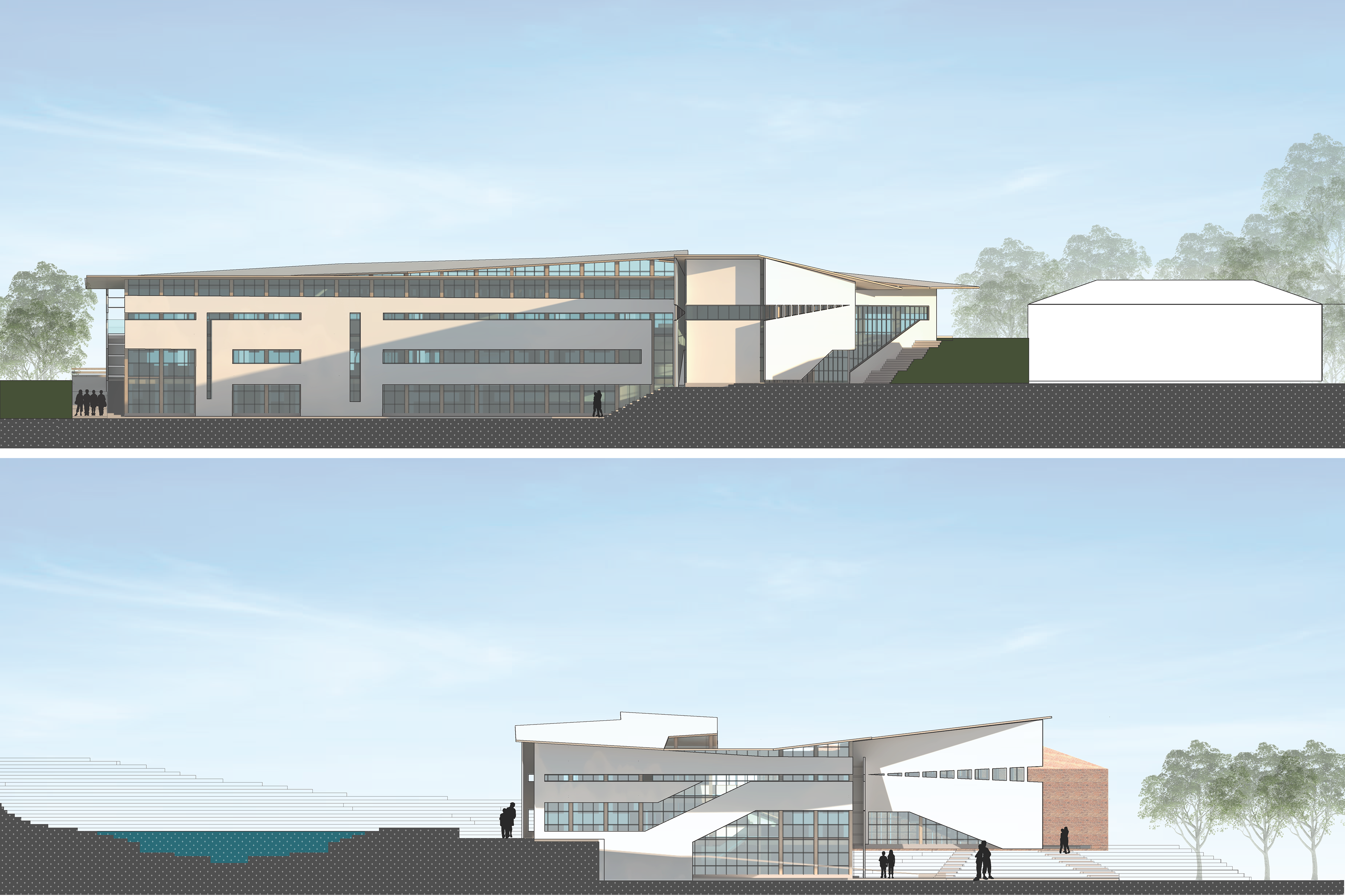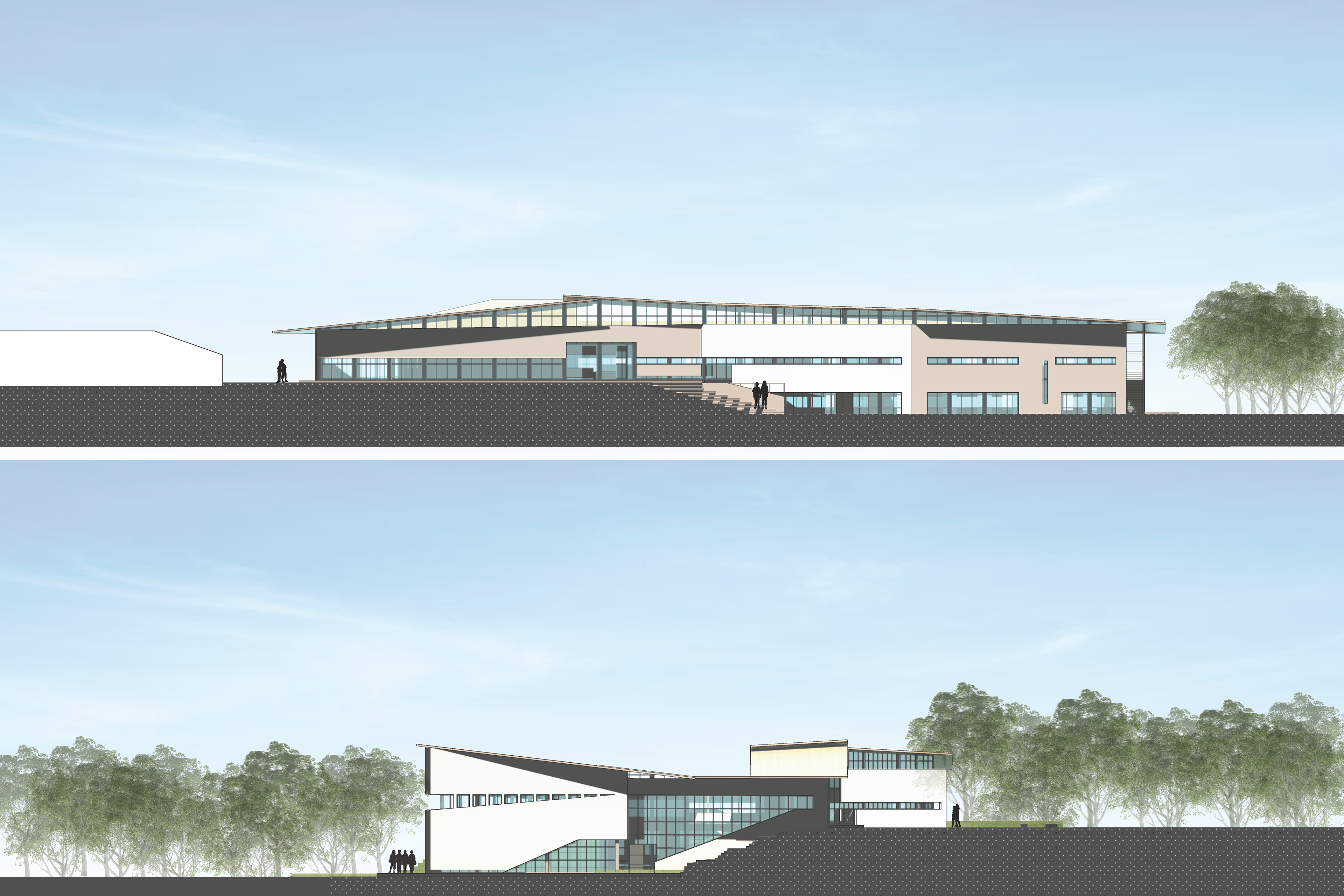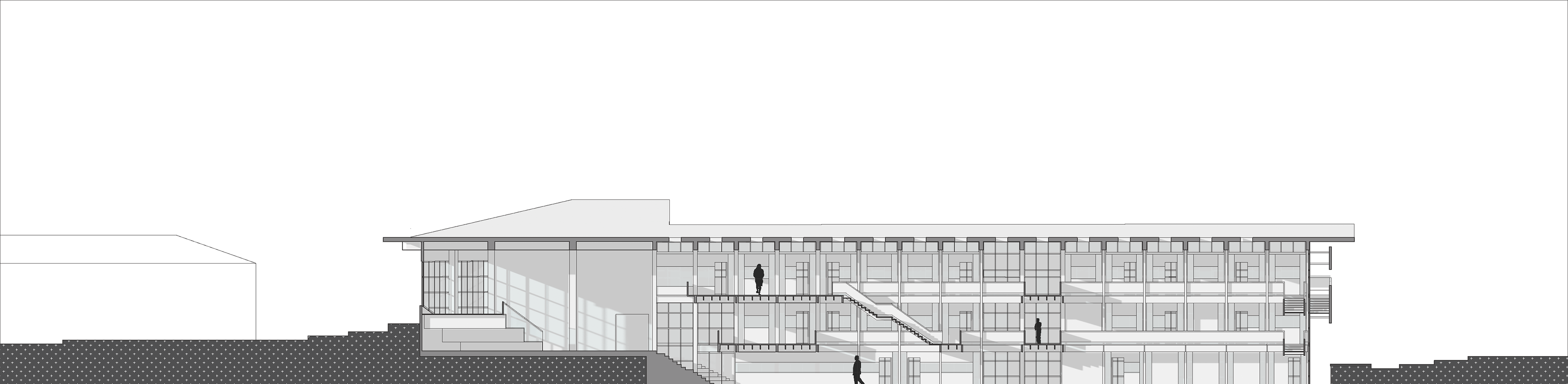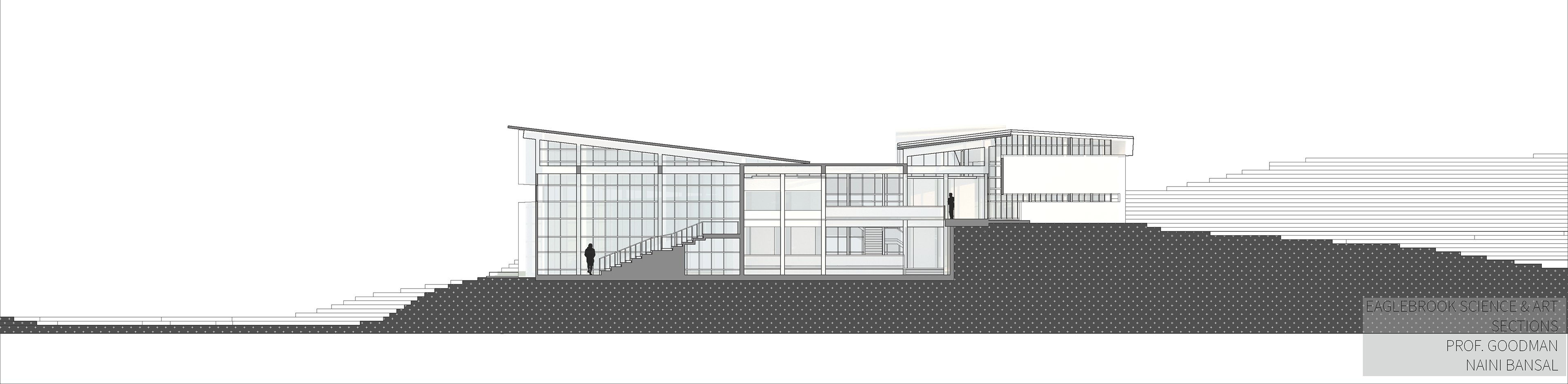 Eaglebrook School in Deerfield, Massachusetts is a boarding and day junior school. The project asks for a new school of arts and sciences on the 800-acre campus. The school wants to integrate the classes and not create a separation between the two different programs. I designed this building based on the users and the site conditions. Circulation is created as a space for interaction between the students and the architecture. Layers of materials are used such as: wood structure and roof, floor to ceiling curtain wall as a tight building envelope and a façade skin. This layering allows for porosity throughout the building. The openings on the façade are based on how the interior spaces are being used. For example, the labs require high stools therefore, the openings are on eye-level of the users.