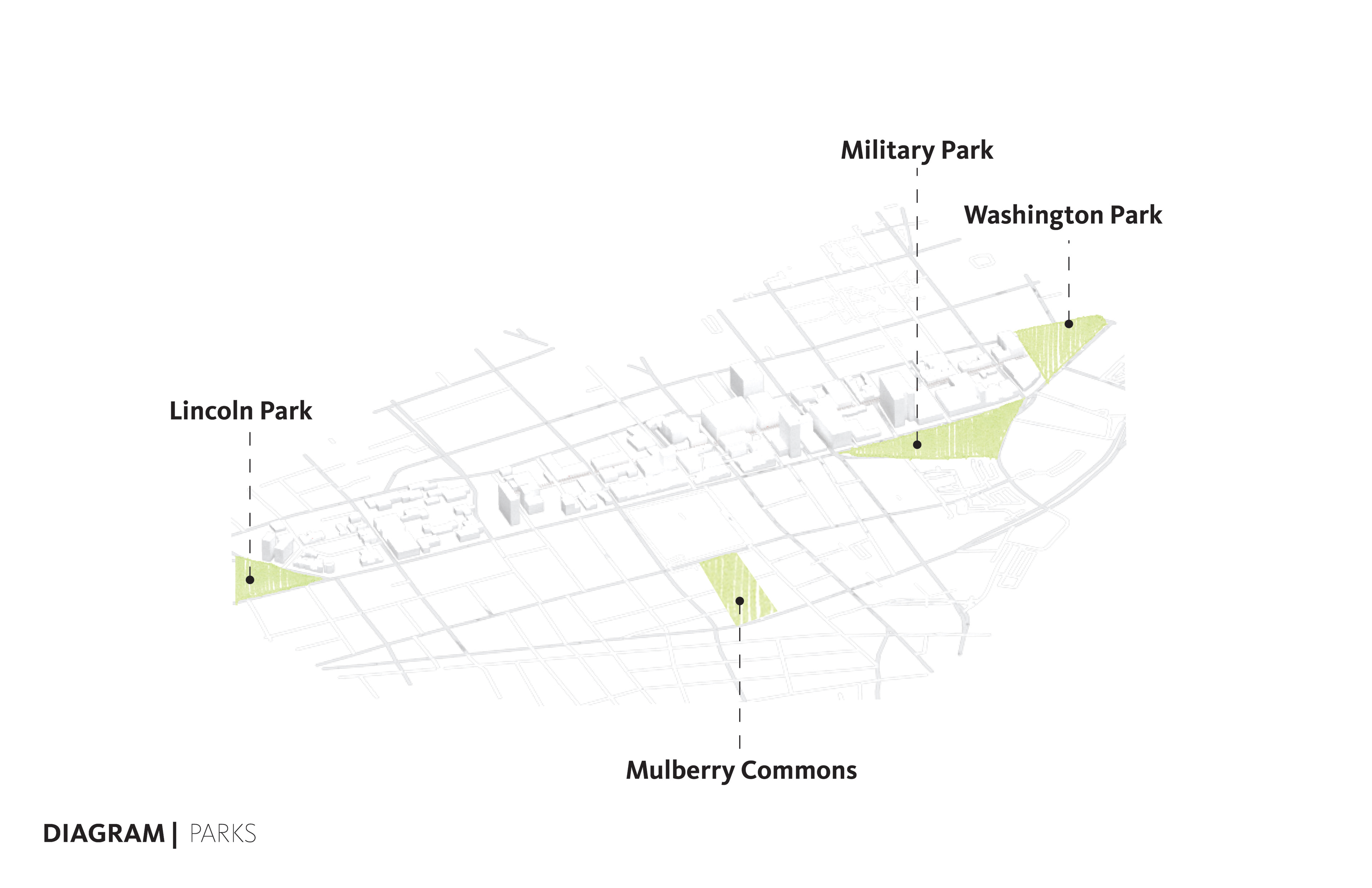 Our mission was to catalyze the evolution of Newark by actively engaging and connecting the streets, the space and the people. We worked on three scales: The City, The Street, and The Hub.